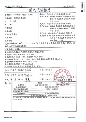 交流低壓開關柜(GGD)資質: